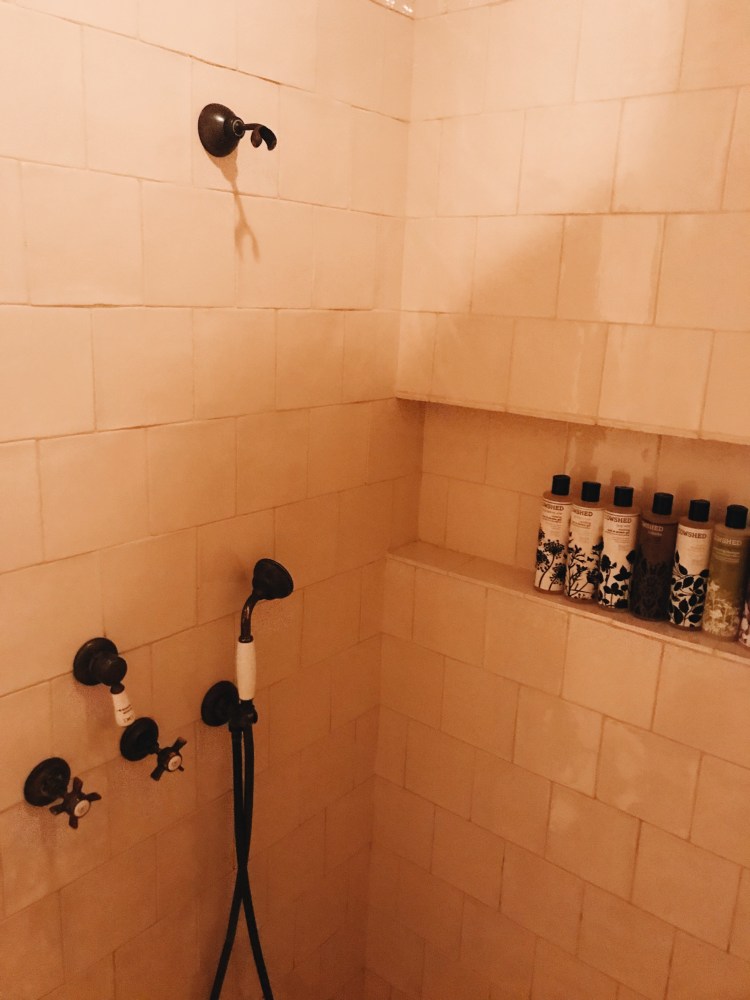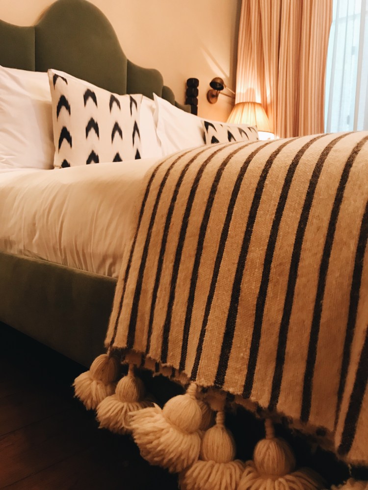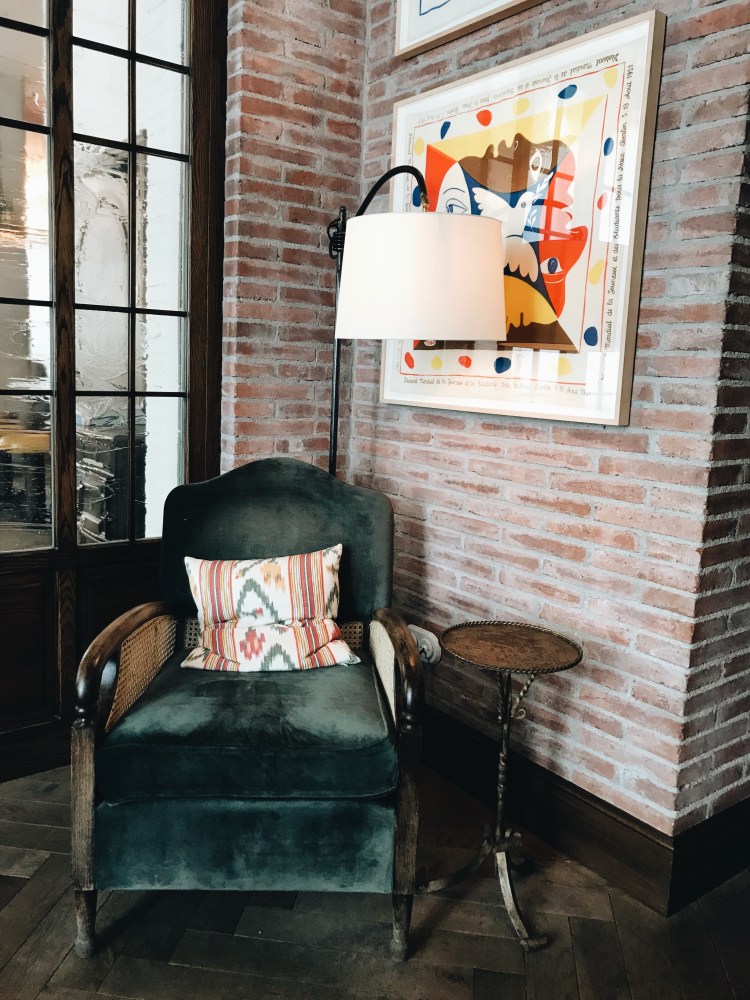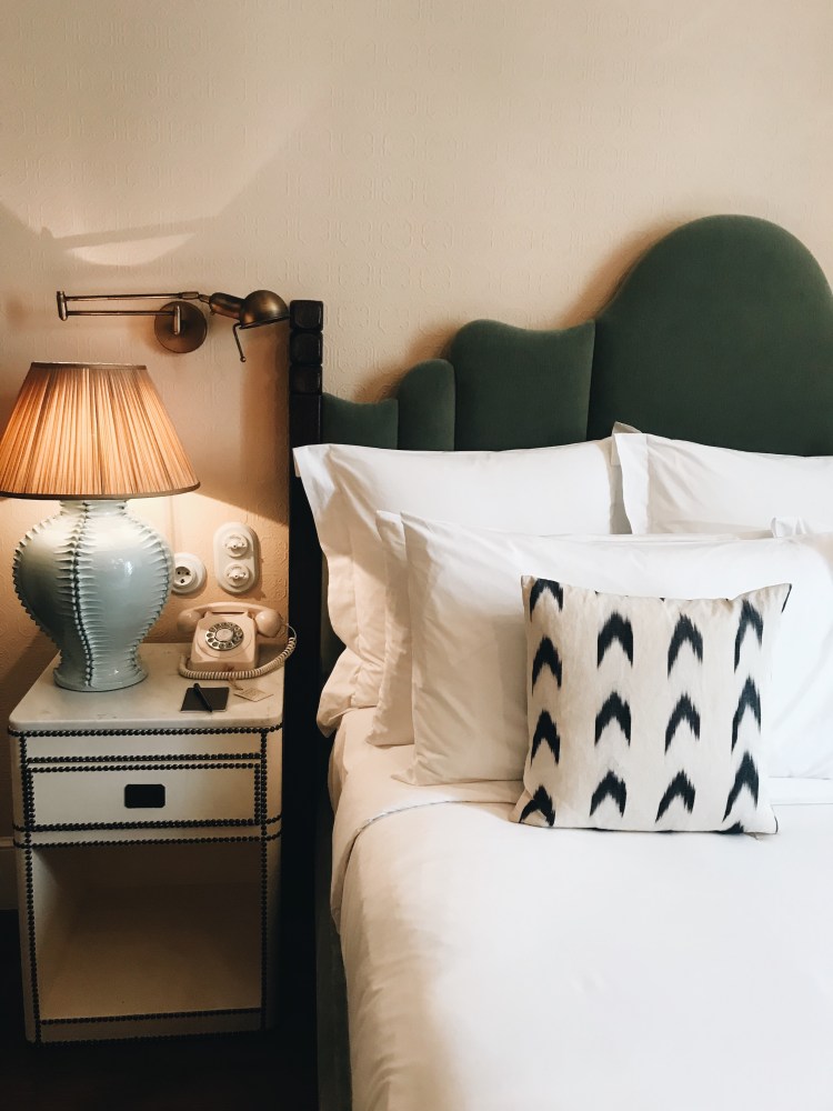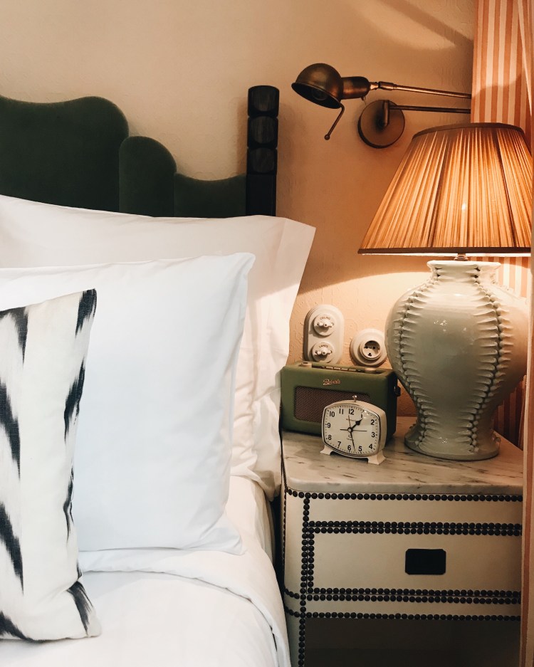 We opted for a small room, with the word small not at all fitting, it was pretty big! Famous for their bedrooms, Soho House Barcelona did not fail. A king size bed with the most gorgeous velvet, teal headboard, Egyptian cotton sheets, and textiles spread across the huge bed you only dream of. The room is filled with vintage furniture, prints, stunning lighting, such a warm, stylish but chic, cosy room, not a detail missed. The bathroom continues the heaven, with traditional and local tiles, vintage brass fittings, walk-in rain-forest shower, and of course filled with every Cowshed product going- what bedroom dreams are made of!
