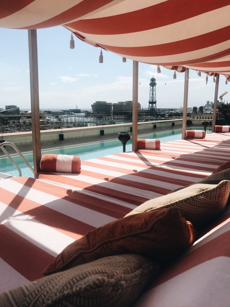 The rooftop pool was always going to be a favourite for me, with the iconic red striped sun beds, looking out over the Port Vell marina and the Barcelona skyline. Here I think is where we spent most of our time, ordering snacks and drinks and reading our books under the April sun…..pretty marvellous indeed!