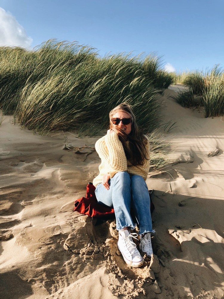 Last weekend we escaped down to the good ole seaside for a ‘chilled, full of sea air’ 48 hours in Camber Sands. We rented an airbnb with friends which was less than a five minute walk to the beautiful beach, covered in golden sand which is unlike all the other shingle /pebble beaches along Sussex coast. The beach goes on and on, stretching over 5 miles, complete with sand dunes, perfect for surfers and kite flyers and I can imagine the perfect spot for sun worshippers in the height of Summer, but also pretty perfect for evening strolls to watch the sun go down. We did attempt a walk early afternoon but the winds were crazy, you couldn’t see where you were going for the sand, although good exfoliation for the skin, so we returned to the house and went back a few hours later. This in a way, was even nicer, as it was pretty much just us on the beach, asides for a bride and groom having their day captured.